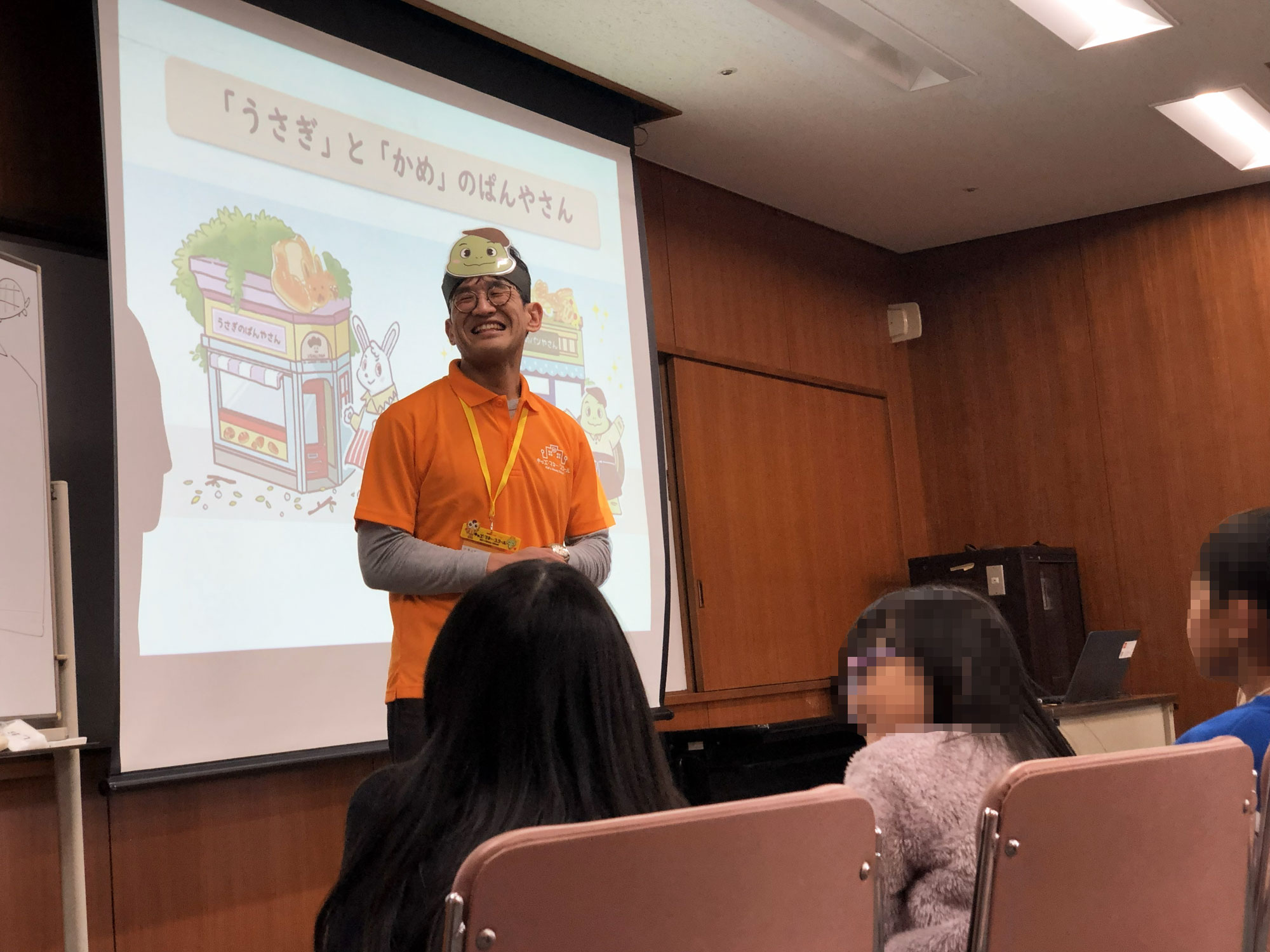 最初は少し緊張していたお子さんたちも、珍しい海外のお金を感じたり、講師の劇を見て、