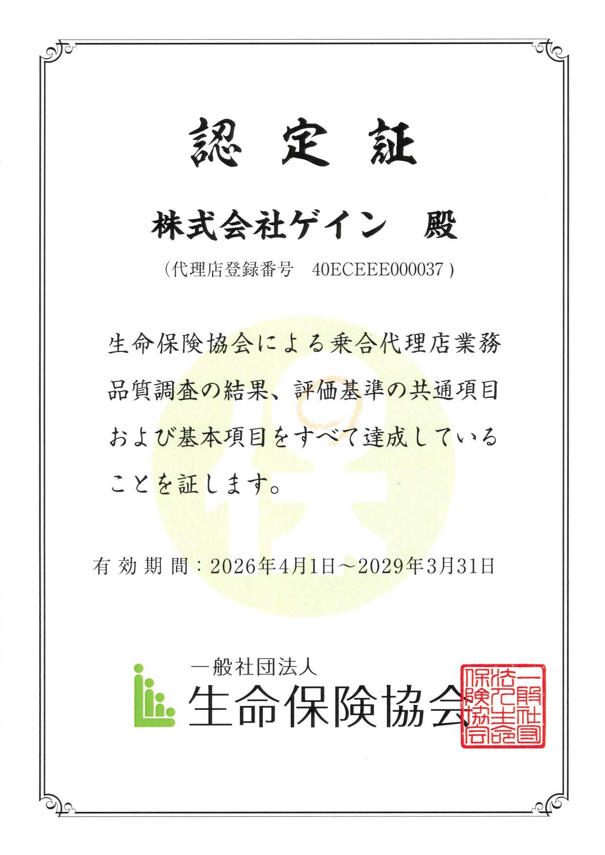 《お知らせ》生命保険協会「代理店業務品質評価運営」認定継続となりました!